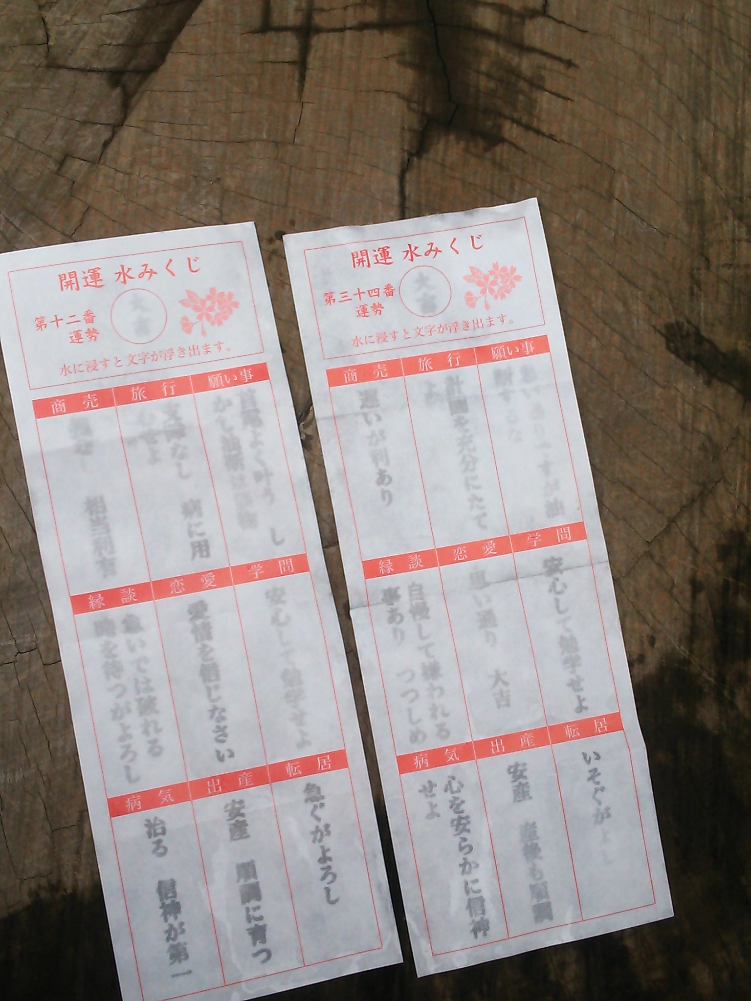 そしてこれは江ノ島神社中津宮で引いた水みくじ。