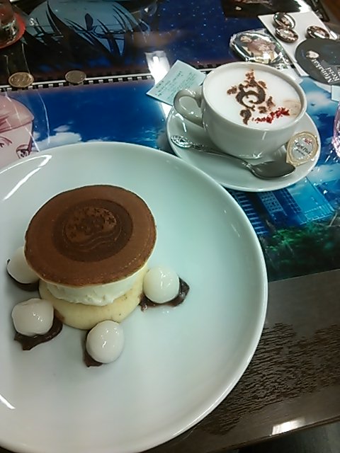 淡島のあんこパンケーキと吠舞羅のラテアート。