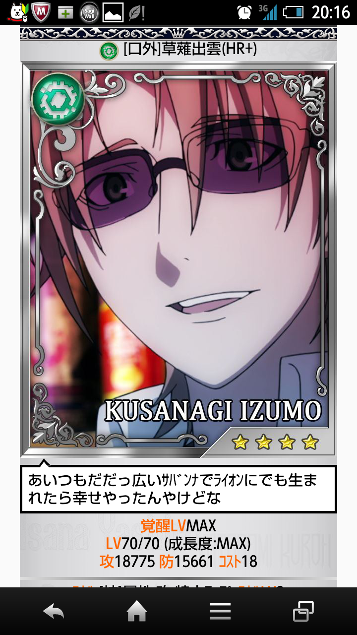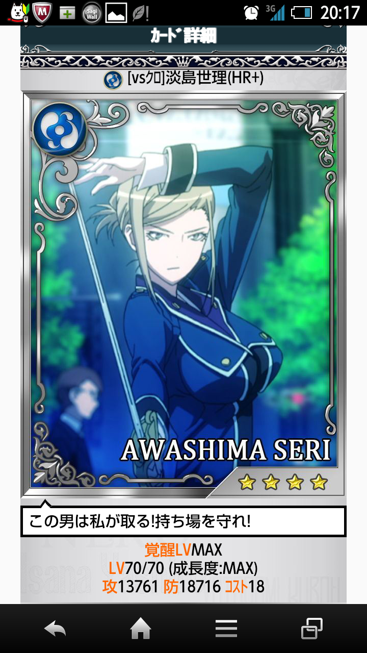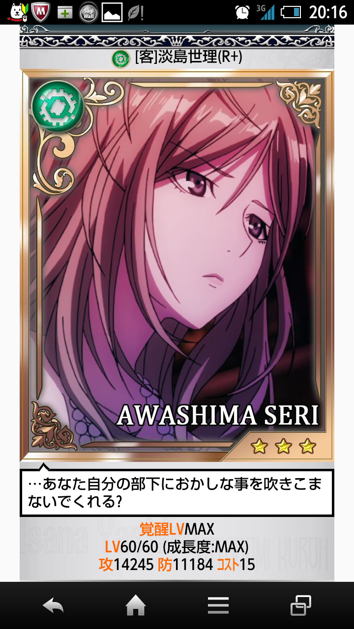 今はこれを強化&覚醒中。これが終わったら上のSRカードを揃えて…