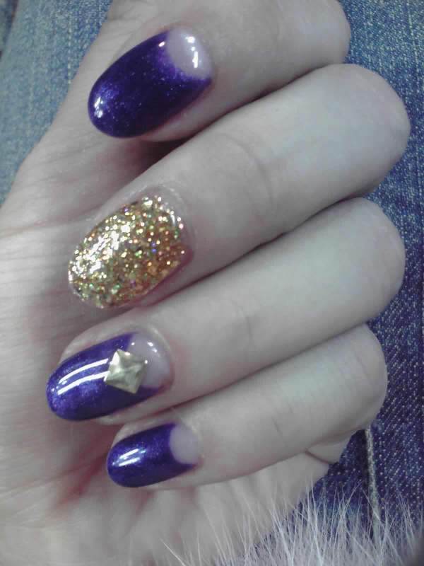 秋っぽく紫(写真だとネイビーだけど、紫デス)の逆フレンチに