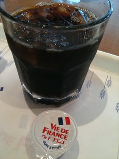 本日初のメシ。クロワッサンとアイスコーヒー。